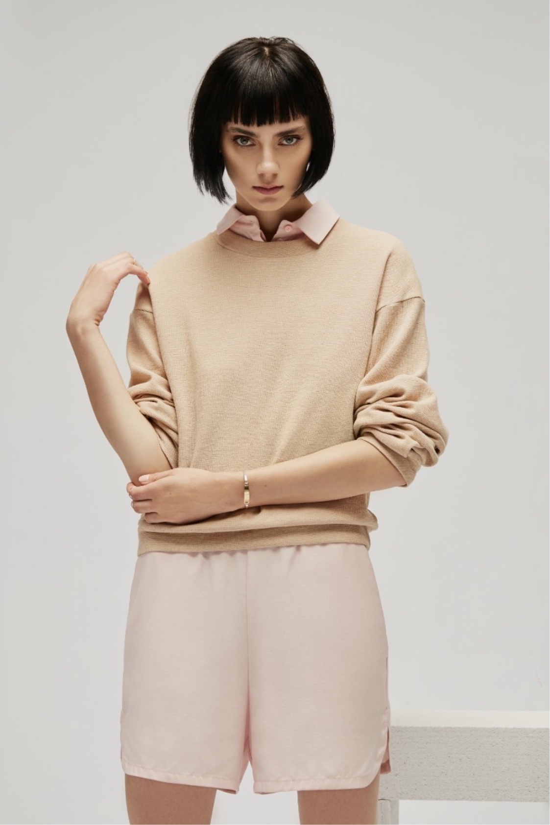 目目 three Semir T-Shirt Women Short Long-Sleeved Pullover Checkerboard Sweet And Cool 2022 Spring New Slim Two-Piece Design Sense